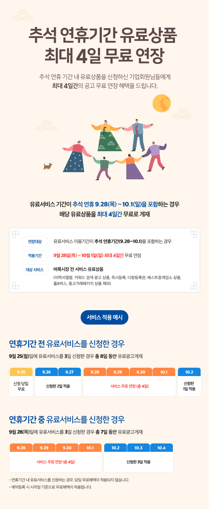 추석연휴기간 유료상품 최대 4일 무료연장